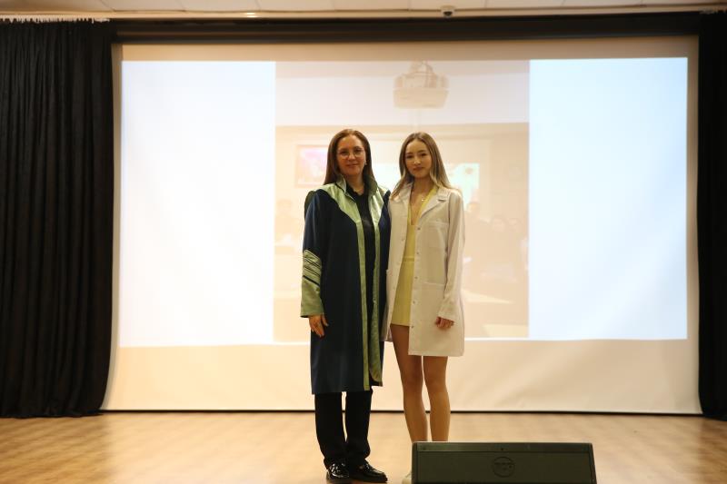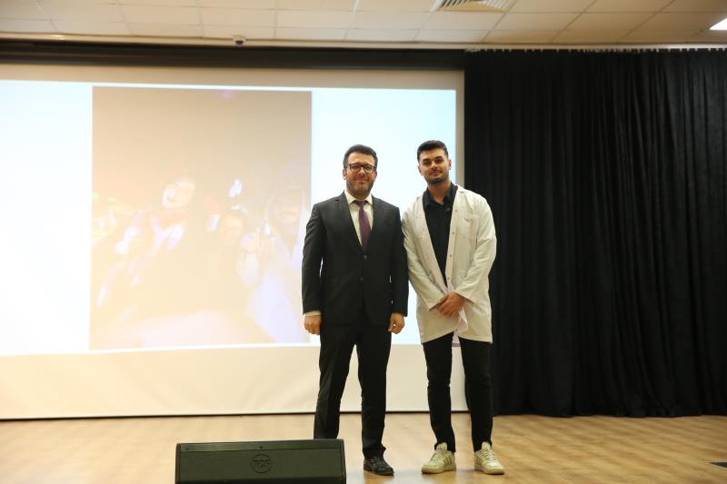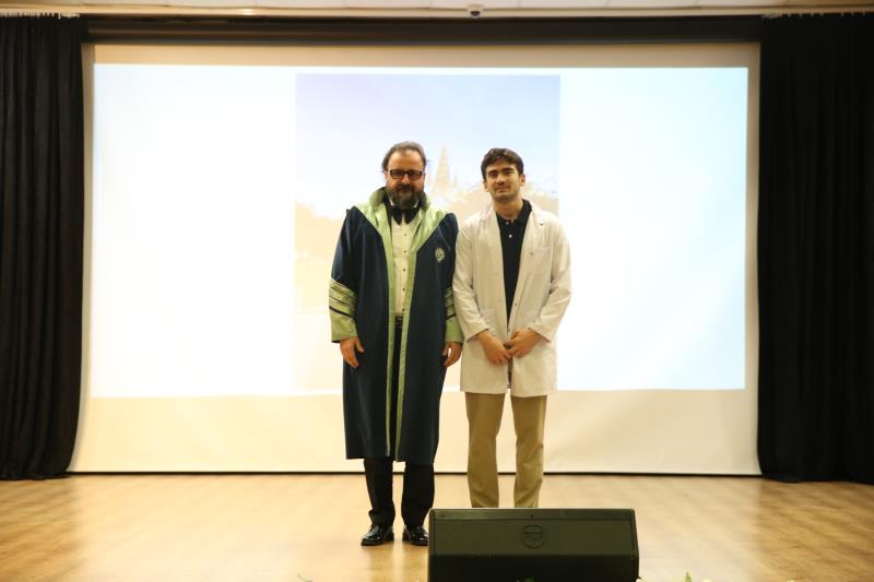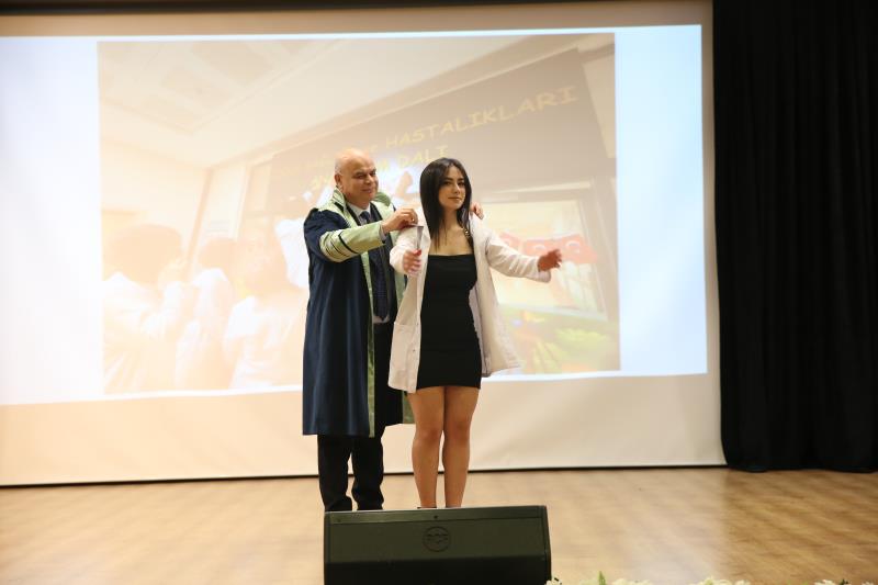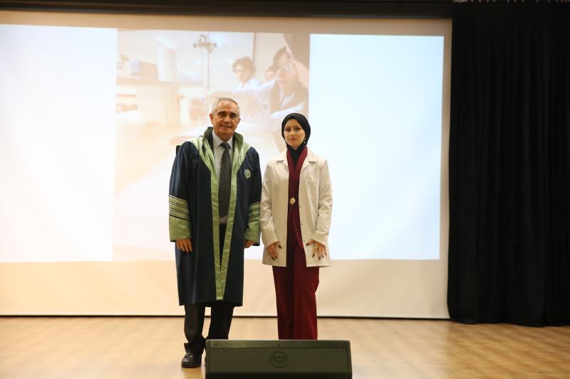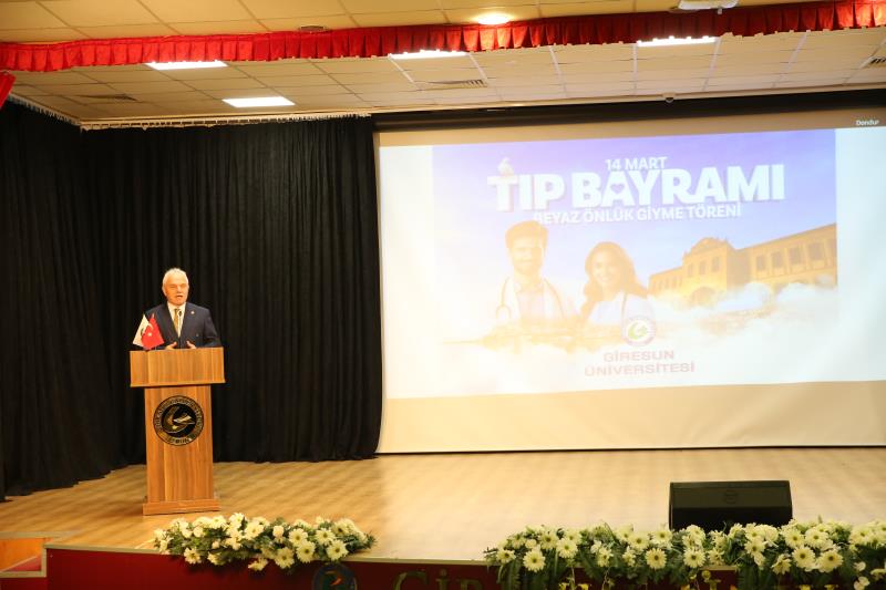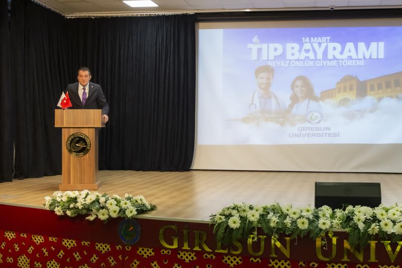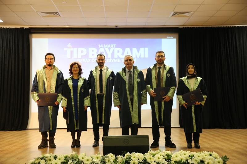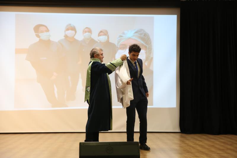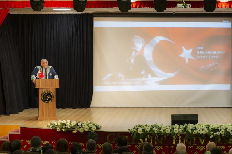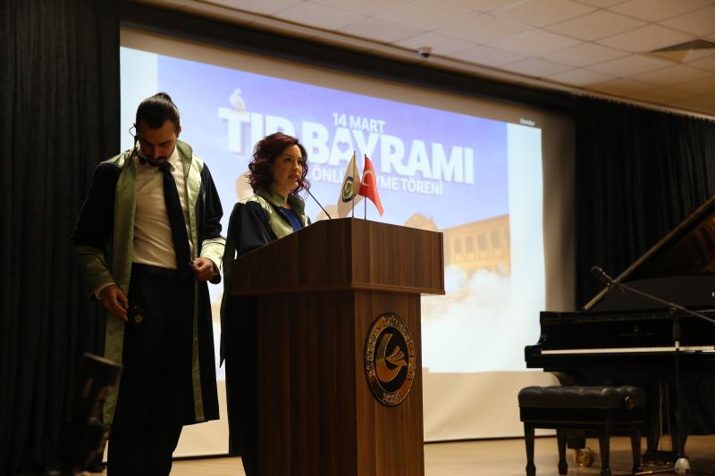 “…14 Mart 1827’de İstanbul’da modern tıp eğitiminin temelleri atıldığında, bu topraklarda yalnızca bir mesleğin disiplini değil, aynı zamanda bir ülkü, vicdan, sorumluluk sahibi olmanın da temelleri atıldı. O günden günümüze kadar, özellikle de milli mücadele yıllarında tıbbiyeliler tüm dünyaya hekimliğin yalnızca bir meslek olmadığını en güzel örnekleriyle göstermişlerdir. Bugün sizler, geçmişten gelen bu değerli mirasın sembolü olan beyaz önlüğü giyerek mirası geleceğe taşıma yükümlülüğünü almış olacaksınız…” Bir hekimde olması gereken üstün vasıflardan bahseden Dekanımız konuşmasını şu şekilde noktaladı: “…Sevgili gençler, tüm dünyada yaşanan ilkesizlik, haysiyetsizlik, gaddarlık ve insanlıktan nasibini almamışlık haline inat bizler daha çok ilkeli, daha fazla haysiyetli, daha merhametli, daha fazla insan olmak zorundayız. Bizler İnsanlığın umudu olmak zorundayız. Sizler mesleğinizi icra ederken bunu tüm insanlığa gösterebilirsiniz. Biliniz ki insanlığın yüksek değerleri olmadan ortaya koyacağınız meslek uygulamalarınızın etkisi oldukça sınırlı olacaktır… Zorlu eğitim ve öğretim hayatınızda başarılar dilerim. 14 Mart tıp bayramınızı tekrar tebrik eder, saygılar sunarım.”