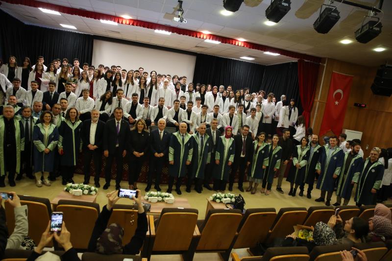 Rektör Vekilimiz ve protokol üyelerinin, bu yıl Giresun Üniversitesi Tıp Fakültesinde eğitimlerine başlayan öğrencilere beyaz önlüklerini giydirdikleri tören, hatıra fotoğrafı çekimlerinin ardından sona erdi.