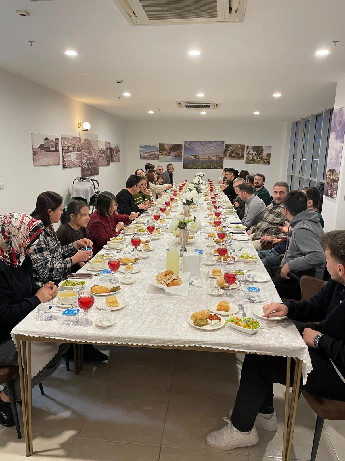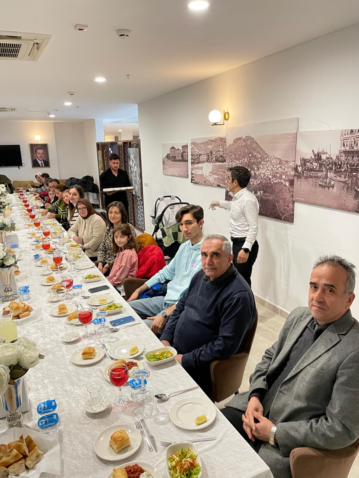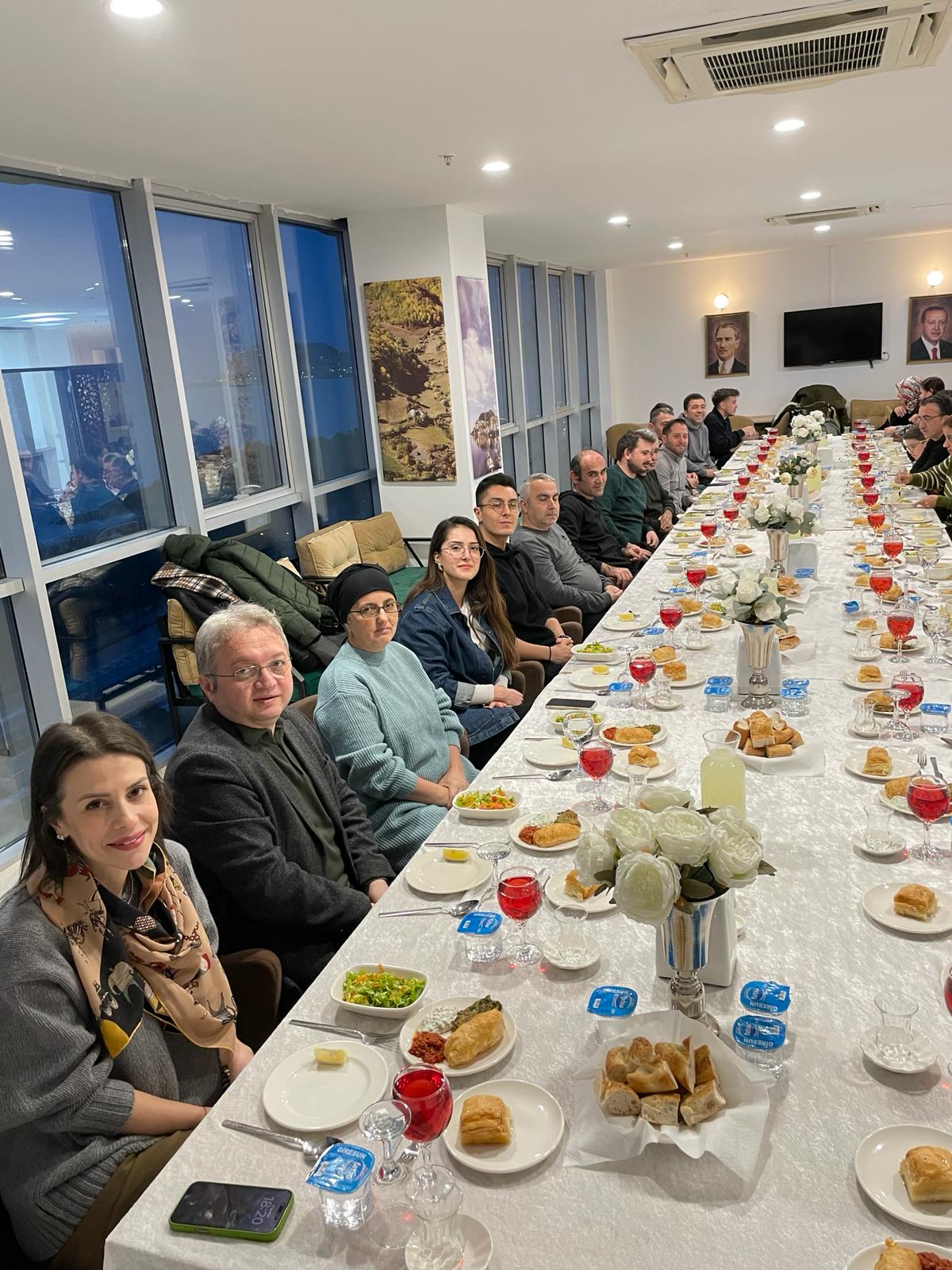 Fakültemiz Dekanlığı idari personelimiz ve aileleri ile 27 Şubat 2026 Cuma günü Kiraz Restaurantta iftar yemeğinde bir araya geldik. İftar yemeği sonrası Dekanımız Sayın Prof. Dr. Erdal AĞAR yaptığı kısa konuşmada "Birlik ve beraberliğin bir göstergesi olan, geleneksel hale gelen iftar yemeğine katılan herkese teşekkür etti."